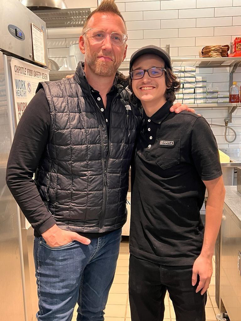 Colin Cabana, Service Leader meets Alex Zepeda, Team Director, & Drew Kriese, Regional Vice President, of chipotle Mexican Grill on October 31, 2023, AKA "BooRito".